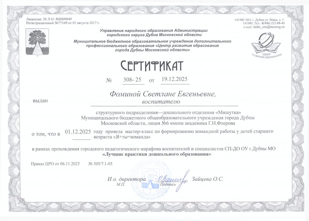 Городской педагогический марафон воспитателей и специалистов СП-ДО ОУ г. Дубны МО «Лучшие практики дошкольного образования»
