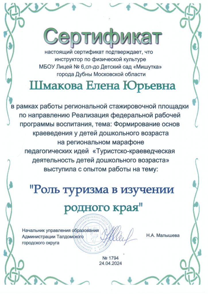 Региональный марафон педагогических идей «Туристско-краеведческая деятельность детей дошкольного возраста»