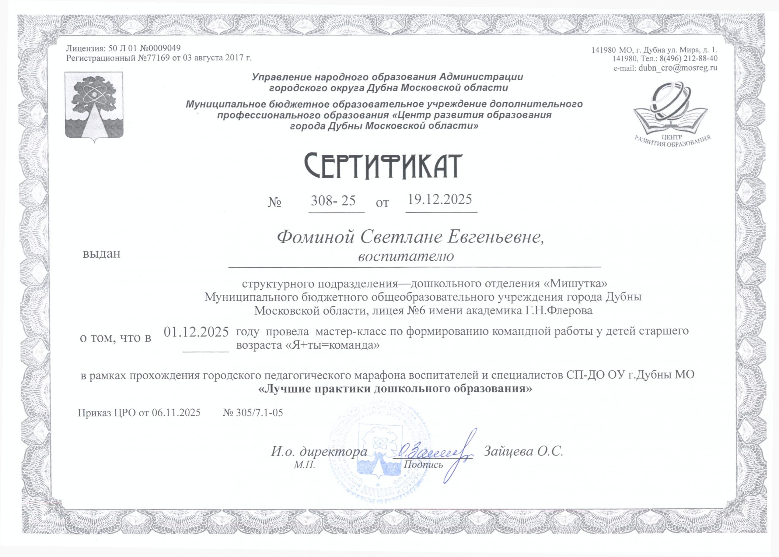 Городской педагогический марафон воспитателей и специалистов СП-ДО ОУ г. Дубны МО «Лучшие практики дошкольного образования»