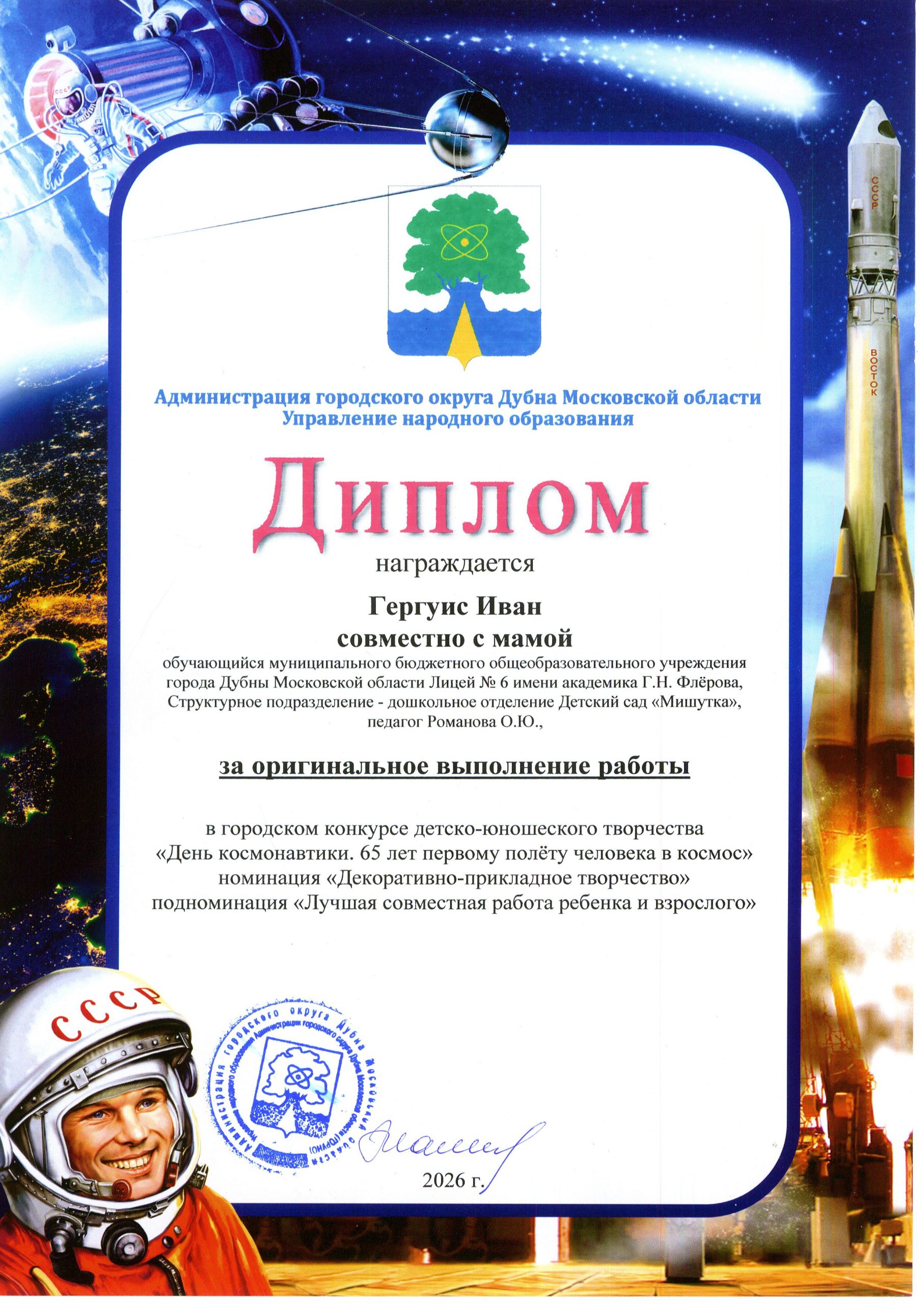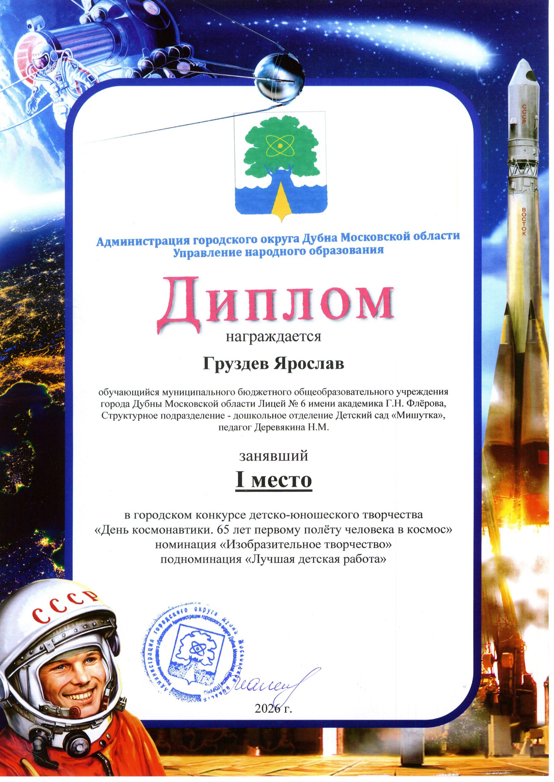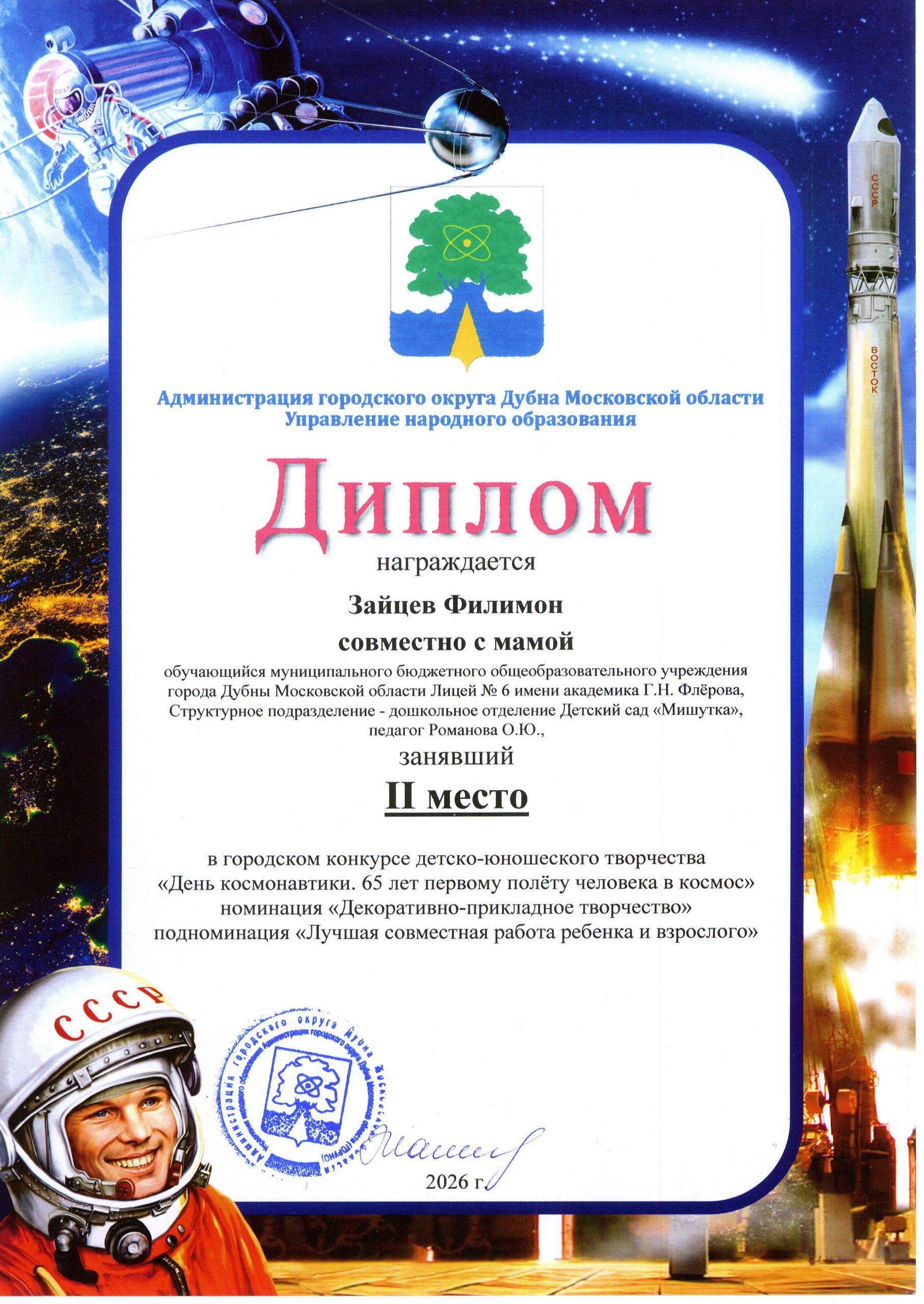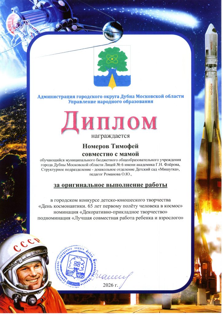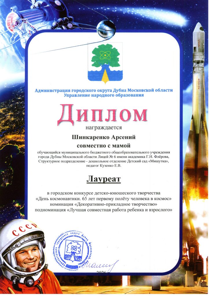 Городской конкурс детско-юношеского творчества «День космонавтики. 65 лет первому полёту человека в космос»