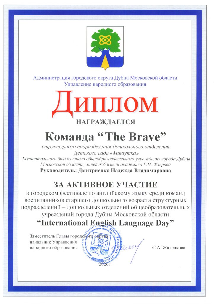 Городской фестиваль по английскому языку среди команд воспитанников старшего дошкольного возраста структурных подразделений-дошкольных отделений общеобразовательных учреждений города Дубны Московской области «International English Language Day»